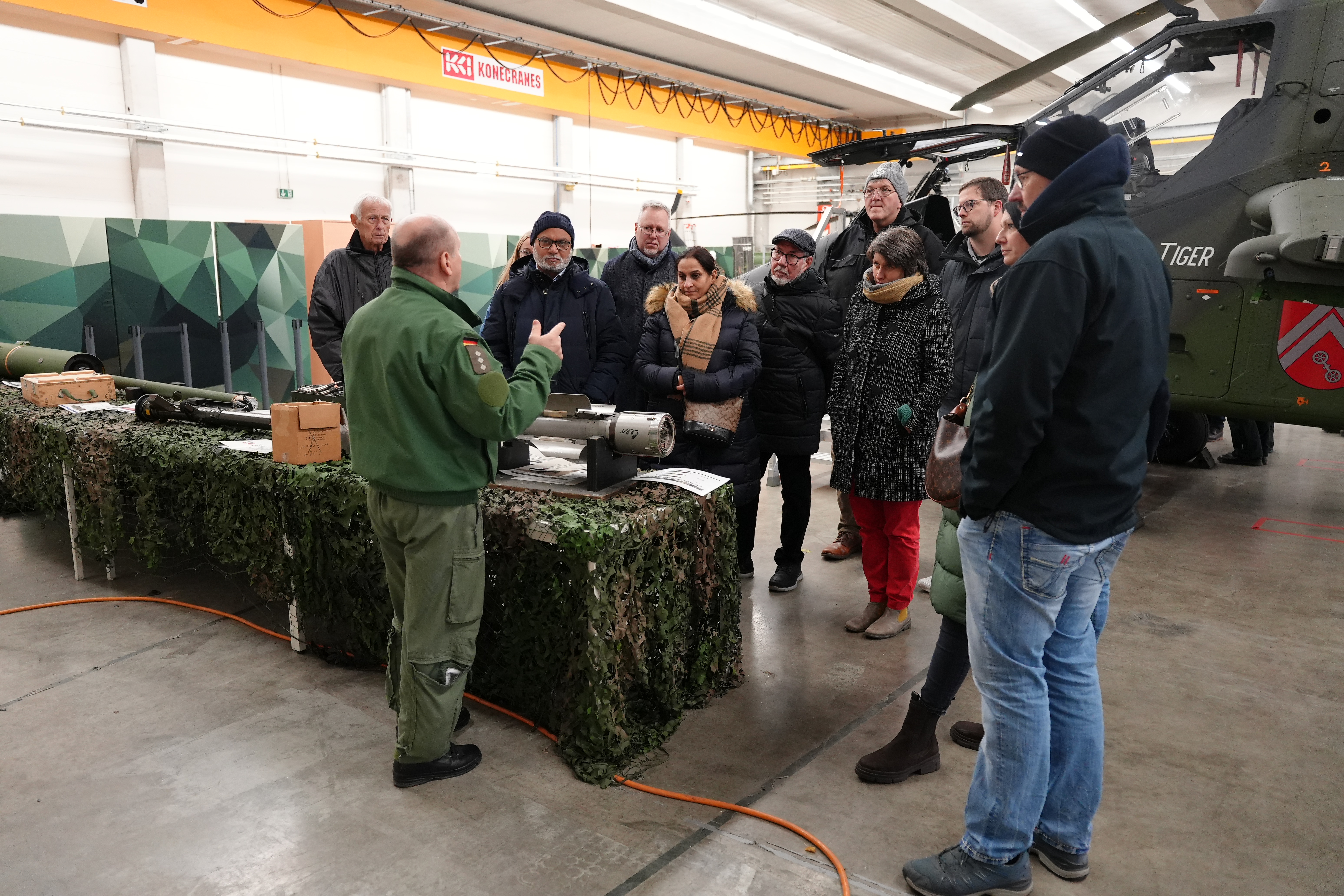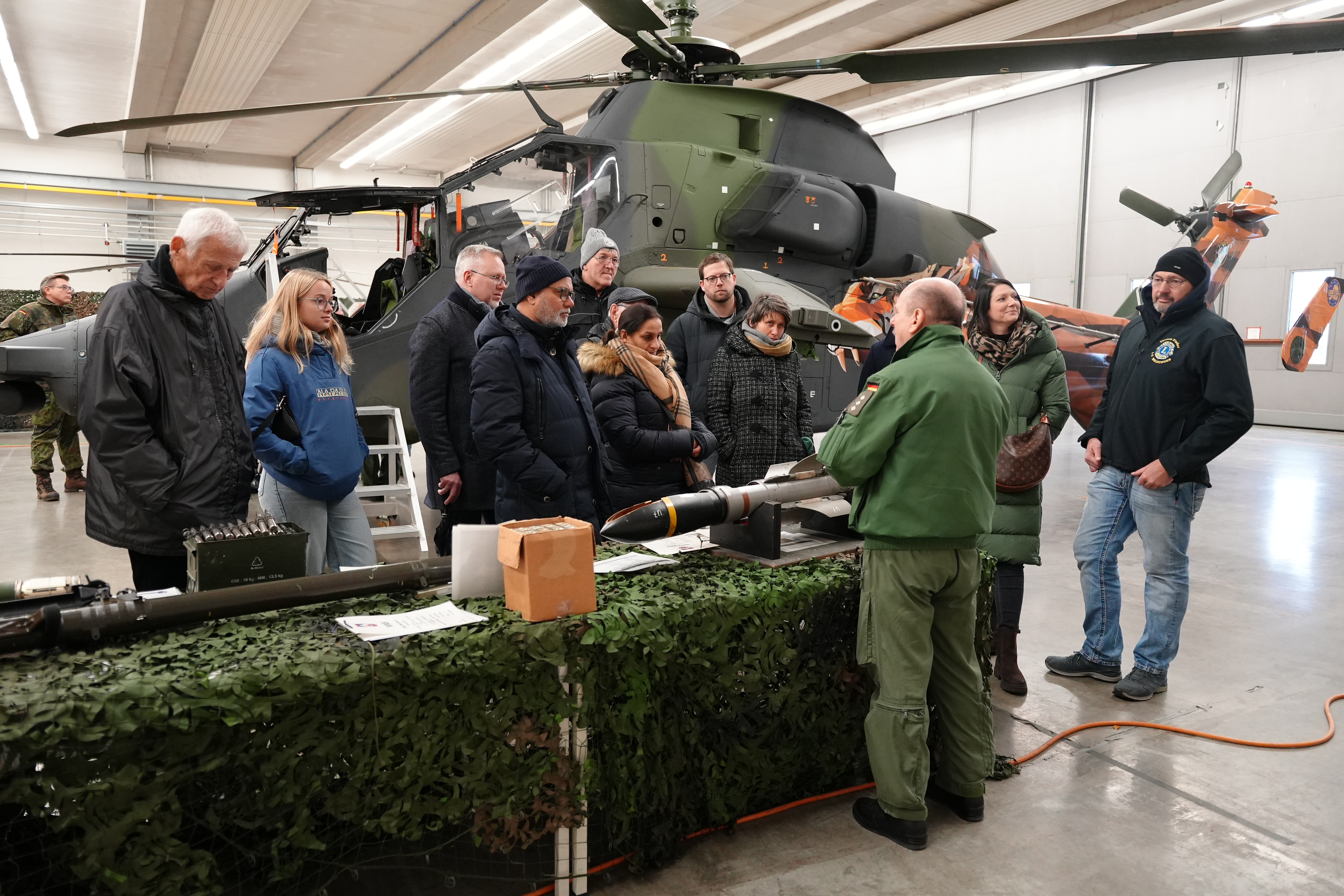Fritzlar 19.11.25 – Fritzlar mit seinem Kampfhubschrauberregiment war Ziel der jüngsten Activity des Clubs. In der Georg-Friedrich-Zinn Kaserne wurden die Melsunger Lions von Vertretern des Regiments begrüßt. Das Kampfhubschrauberregiment 36 "Kurhessen" ist mit seinem Hauptwaffensystem Tiger ein fliegender Kampfverband der Division Schnelle Kräfte. Das Regiment ist auf dem Heeresflugplatz Fritzlar in Nordhessen stationiert und unterstützt die Panzerabwehrkräfte sowie Spezialkräfte des Heeres. Die Hubschrauberpiloten präsentierten den Hubschrauber und erklärten Funktionsweise und Waffensysteme. Mehr als 2000 PS machen den Hubschrauber 290 km/h schnell, wobei dann 200 Liter Kerosin pro Stunde benötigt werden. Das Regiment unterstützte die Streitkräfte bereits bei vielen Auslandseinsätzen u.a. im Kosovo, in Afghanistan oder in Mali. In den Gesprächen mit den Vertretern der Bundeswehr konnten die Lions zudem erfahren, wie die Streitkräfte sich auf die zunehmende Bedrohungslage ausrichten und die Wehrfähigkeit weiter ausbauen.